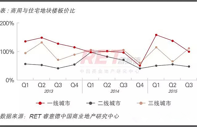 商用土地郊區分布比重近七成,促使商用土地與住宅土地的樓板價比值繼續回落;商用土地與住宅土地的成交溢價比與上季度基本持平,商用土地成交溢價率保持平穩,以底價成交為主。