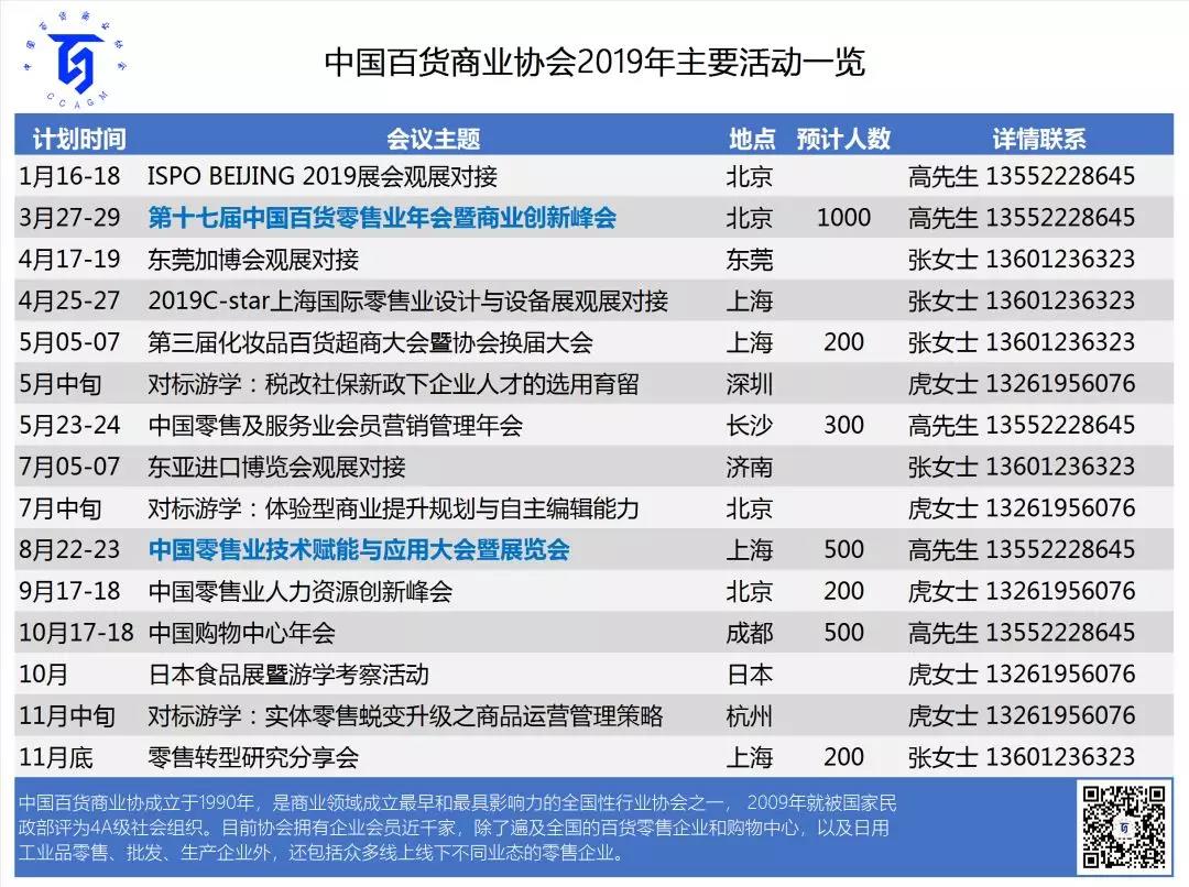 “未來(lái)已來(lái),從心出發(fā)”這是3月28-29中國(guó)百貨商業(yè)協(xié)會(huì)年度大會(huì)的主題,也是協(xié)會(huì)2019全年工作的主題。