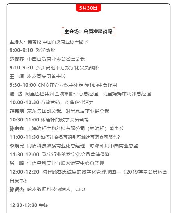 倒計時10天 最新日程 | 中國零售業會員營銷大會(5.29-31長沙)